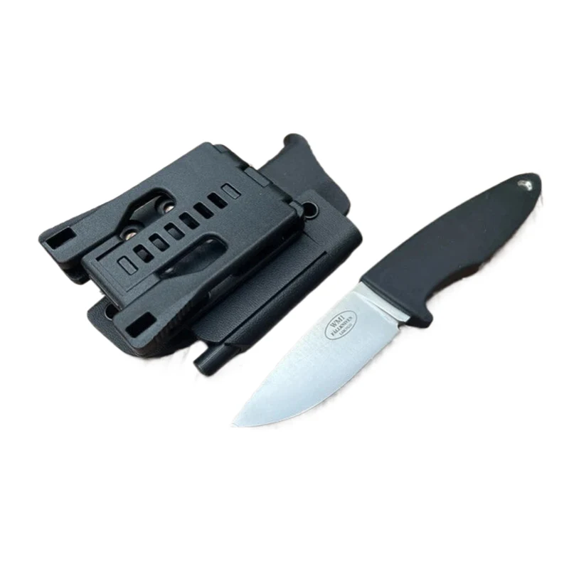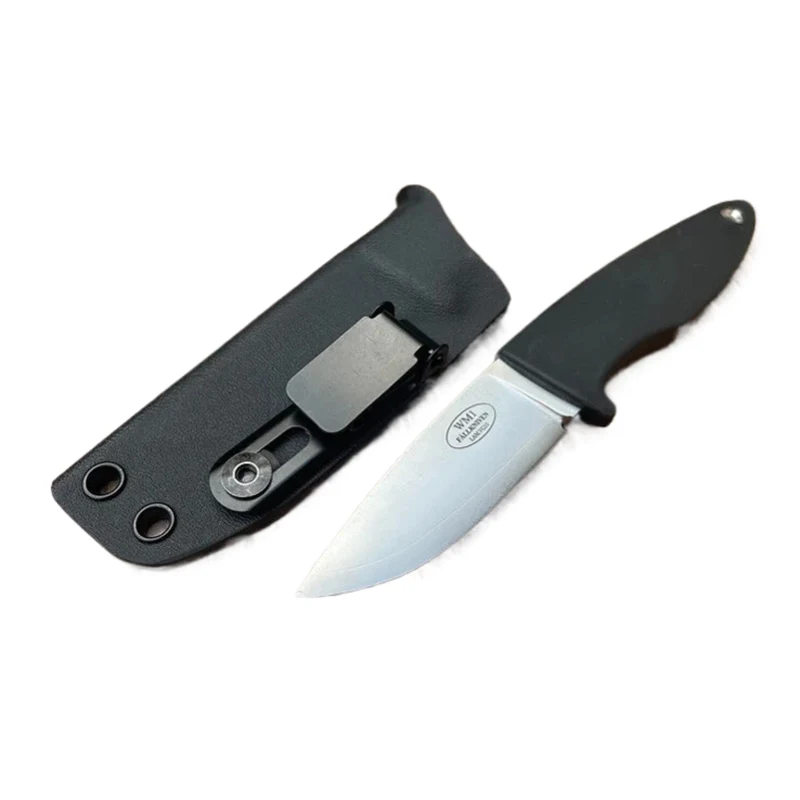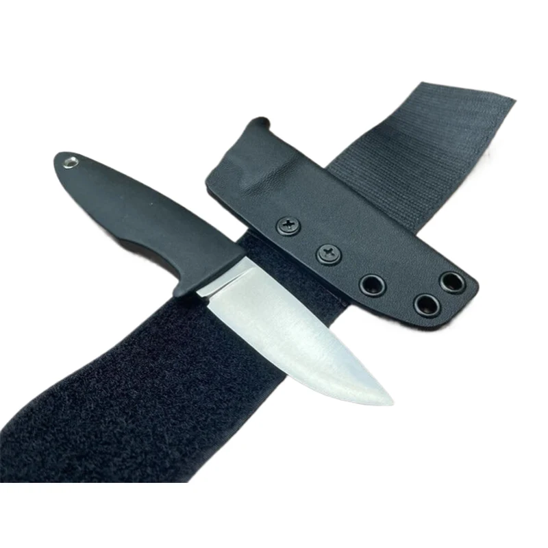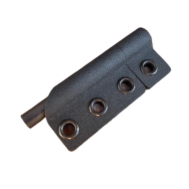 En klämma är det mest praktiska sättet att fästa kniven i bältet på traditionellt sätt. En kardborrehållare är idealisk för att bära kniven över bältet. Kardborrebandet är också en praktisk lösning för att fästa kniven på remmen på din ryggsäck. Förutom Kydex-slidan kan jag fästa en eldstålhållare, valfritt med eldstål (80mm lång).