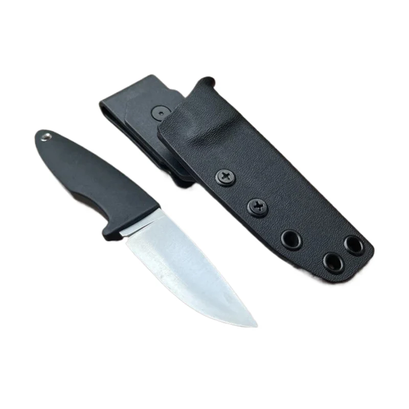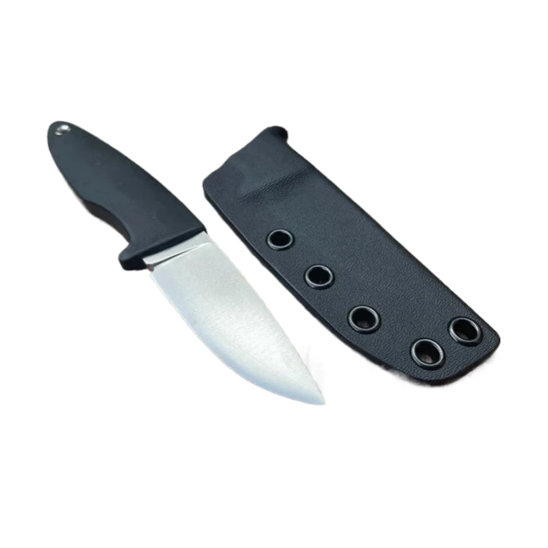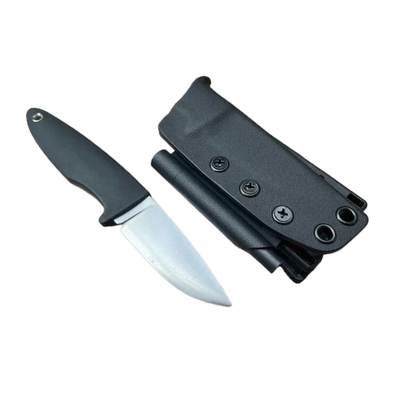 Det horisontella knivslidans fasta bladet var också format för att passa perfekt, med det mjuka handtaget i åtanke. Formen på Kydex-slidan är också idealisk för att bära Mini-kniven runt halsen som en halskniv.