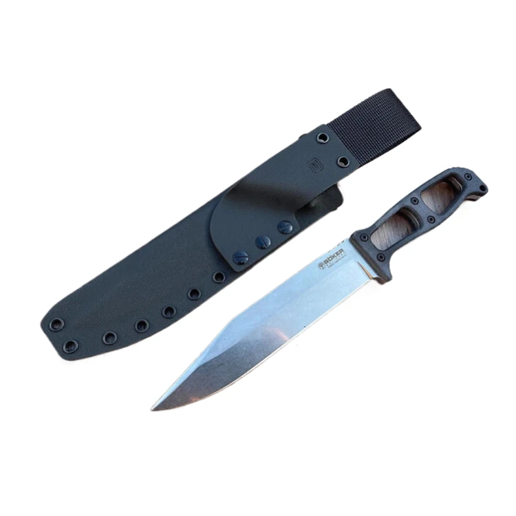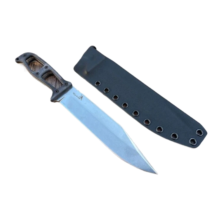 Knivslidsskyddet är gjort extra smalt och har ett tillräckligt stort dräneringshål i spetsen så att smuts och hår kan sköljas ur. Slidöppningen är formad så att kniven sitter säkert och fortfarande kan dras med en hand utan större motstånd. På grund av knivens storlek och vikt rekommenderar jag en bälteshållare med nylonband. Om du föredrar en Multi-Lok kan denna fästas horisontellt, vertikalt och diagonalt 360° rotera, tack vare öglearrangemanget - så alla bärmöjligheter är öppna för dig.